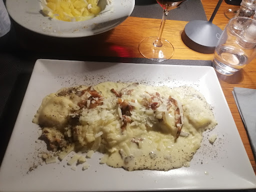 Ate there two times because the service we got from the first sever was really good. Nice wine suggestions and good food. The second time was not great at all. Two of us wanted appertizers, two didn’t. They asked us when we would like the meals to be served, so we said that everyone can get their main meal after those with appetisers are done, so we can eat the main together. The mains for the other people came together with the others appertisers. So could not eat main together. They asked if the steak was to be medium, answered yes, came to the table really rare (I don’t really mind how the steak is cooked, but…). When we asked for the bill it came pretty fast, but we wanted to pay with a card, so tried getting the servers attention so we could get a terminal (went smooth the first day), but to no vain. Some left to go by ice cream at another shop, went back and still hadn’t been able to ask for the card machine because the server was no...