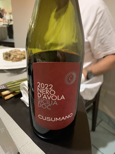 Read moreFood was very well prepared, the menu is mainly seafood and meat but for starter and main course there is a vegetarian option: the pasta alla norma. It was very good, not the regular pasta norma we found everywhere else on the island. This was topped with pistache nuts crumbles.. very tasty!! Staff very helpfull. They have a huge selection of wines, too bad we are not really wine-people, but I bet a wine-enthousiast...