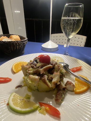 We were also served bread and there was no cover charge. Service was prompt and friendly. Their house wines were divine, light and paired wonderfully with the food ordered. The location being by the sea was beautiful, and we were dining with the sound of the waves crashing against the rocks. I bet it is beautiful in the daytime or even at sunset. Total spend was €88 which was extremely well worth it.
