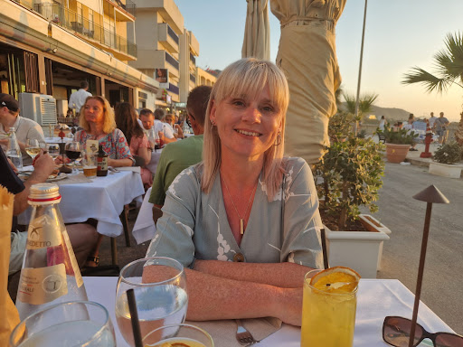 We sat outside beneath the soft glow of streetlights, sipping cocktails as the sun set over the sea just across the road. The views were incredible, and the location couldn't be better — steps from the beach and surrounded by other lively cafes and bars.