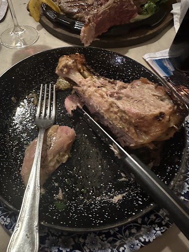 Read moreRecommended by our AirBnB host, put our names down on the wait list and went inside to grab a glass of wine then waited outside, the restaurant was packed with a sizeable Waitlist, We ended up waiting 20 minutes. First impressions there is too many tables for the amount of waiters to handle so the waiters end up running around like crazy people which i understand is a common theme in Italy. A stale bread roll wrapped in paper basically thrown on your table as the waiters run past dumping bread to each customer. Ordered the swordfish carpaccio for entree which was ok, nothing special. For mains we ordered the t-bone and the pork shank. T-bone was disappointing, was very poorly butchered, took me 10 minutes just to break it down to a manageable & edible steak, ordered it medium and it was cooked extremely uneven likely due to the poor butchering job. The pork shank was very delicious but unfortunately came out only slightly warm not hot at all. Finally we ordered the tiramisu which was one of the worst I’ve ever had, Dry and tasteless something similar to what a supermarket would served in large quantities. Restaurant has potential but the food & service just didn’t have the love put into it as you’d expect from a Sicilian style restaurant. I’d imagine in the busier months of the year the kitchen & service...
