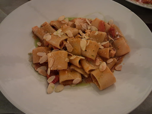 Ho ordinato gli gnocchi con vongole e il trancio di salmone in salsa yogurt, e sono rimasto estremamente soddisfatto. Gli gnocchi erano perfettamente cotti, soffici e ben amalgamati con un sugo di vongole delicato e saporito. Il trancio di salmone, poi, era cotto alla perfezione: croccante all'esterno e tenero all'interno, accompagnato da una salsa yogurt leggera che ne esaltava il sapore senza sovrastarlo.