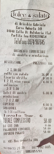 Read moreOttimo ristorante nel cuore di Cilento sotto il monte Bulgheria , con cordiale accoglienza da parte dei proprietari ,disponobili a rispondere a ogni esigenza. Siamo stati con gruppo per due pranzi e il cibo era preparato con grande maestria di ofrire piatti con gusti e sapori autentici della tradizione locale con prodotti tipici locali, freschi i genuini buonissimi antipasti di vari salumi e formaggi caserecce specialmente quello di capra accompagnati di buon vino di casa e dolci scuisiti. Consigliamo ,,lagane e ceci ,porchetta al forno , diverse pizze specialmente quella fritta , e non a l'ultimo posto antipasto di diverse verdure cucinati in vari modi. Grazie mille .Tutti contenti .Consigliamo a vivere questa esperienza gastronomica nel bel paese di Celle di Bulgheria...