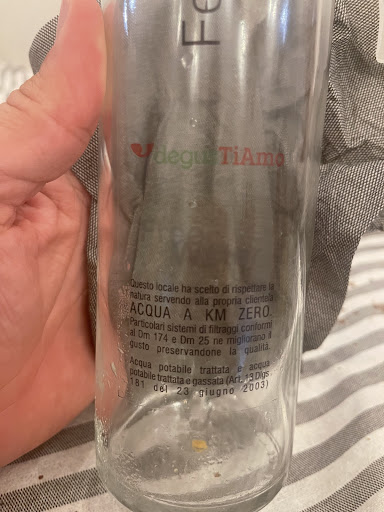 Read moreTi freghiamo in Cilento, imporre ai propri clienti, nascondendosi dietro la falsa etica di un’etichetta l’acqua del rubinetto, facendola pagare 2€. Per 75 ml. può definirsi un’ipocrisia o un furto con destrezza non altro. Le pietanze di scarsa qualità, ho mangiato due taglieri di salumi e formaggi mini mini e di qualità da discount pagati 15 euro l’uno e un piatto di paccheri con tonno e pistacchio che erano paccheri non cotti spacciati per al dente, ma il tonno forse era scappato dalla rete quando l’hanno pescato e granella di pistacchio da discount. Una cotoletta di pollo con patatine 15€., non sei Vissani o Cracco caro proprietario! , se le persone vanno all’estero a mangiare pesce fresco a prezzi onesti e non cotolette fritte nell’olio del pesce un motivo ci sarà, rifletti perché il tuo fare mette a repentaglio la reputazione della tua splendida località. Cari esercenti ribellatevi a questi finti operatori turistici. T’invito caro proprietario a non rispondere al mio sgomento per il pagamento dell’acqua di rubinetto con con la ridicola risposta “ripaghiamo il costo della spillatura”non era birra era acqua; piuttosto vai a cena a Isca delle donne dove nel coperto ti offrono crostini al paté d’olive nere a km0, vino rosato, pane, acqua e vino della casa per tutto il pasto. Tu fai pagare l’acqua del rubinetto 2€. E 2€. Il coperto anche ai bambini, che servi per ultimi e non per primi, coprto=tovagliette di carte. A voi clienti il piacere...