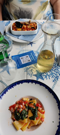 Delizioso! We stayed in Palinuro for a week and ate here 2 nights in a row! It is a casual seafood restaurant and pizzeria with a decent rock soundtrack playing in the background . The staff and owners clearly take great pride in their area, are very knowledgeable about their produce and are very friendly and efficient. Over the 2 nights we had delicious starters of antipasti di mare and parmigiana di mare. Primi of pasta con gamberi e zucchine, pasta con moscardini. And secondi of pesce spada. We tried a couple of bottles of wine from the region. Both were delicious. They also have beer on tap. We were offered home made digestifs on both nights which is always a lovely touch. The cretamolo was...