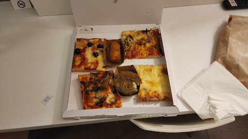Frequento questa pizzeria al taglio saltuariamente, soprattutto quando ci va di mangiare i calzoni che sono sublimi. Ieri ho avuto un'esperienza che voglio condividere perché merita attenzione. Ho ordinato 20 calzoni e 20 pizze miste, al momento del ritiro sono stato accolto dal proprietario Angelo che mi ha servito la prenotazione e quando pagavo con la transazione bancomat mi sono reso conto a mente che c'era qualcosa che non tornava.... Infatti mi stava dando 2 teglie di pizza per un totale di 30 pezzi e no 20. L'ho subito fatto notare e Angelo senza esitazione ha ammesso il disguido, mi ha ridato la differenza ma la cosa che mi ha stupito è stata, oltre alla sua gentilezza, che ha voluto lasciare i pezzi di pizza in più dentro la scatola, nonostante i soldi resi. Questo suo atteggiamento va oltre .... e di questi tempi è merce rara! Dietro il bancone si muove con estrema attenzione e coordinamento.... col sorriso e con educazione.... coinvolgendo tutto lo staff che non può fare altro che seguire il suo esempio. Un esempio che a noi clienti resta impresso e che di certo ci fa tornare con voglia..... oltre si suoi...
