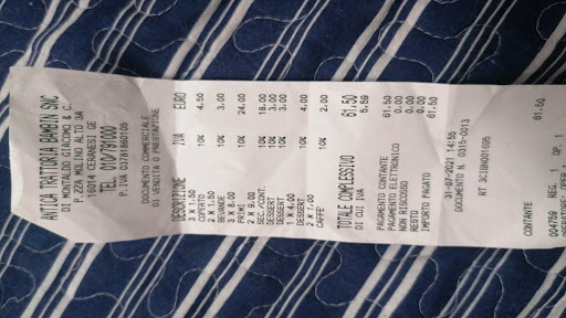 Antica trattoria bambin ristorante Piazza Molino alto 3,A Ceranesi ..provincia di Genova ..con consumazione sul posto e fa anche asporto , il cibo e di qualità. Nella frazione di San Martino di Paravanico sempre parte del comune di Ceranesi sembra essere di per sé un concentrato delle migliori trattorie dei bricchi , anche la trattoria bambin la cui storia si perde nei decenni se non addirittura nei secoli il cibo e genuino e tipico la fa da padrone con un'offerta di terra che richiama proprio i sapori di casa a prezzi contenuti .Qui mangia ..lasagne al pesto, vitello tonnato, ravioli al sugo, lasagne ai funghi porcini , insalata, gnocchi al pesto, lavagnetta al pesto, torta alle pesche con gelato, macedonia, pane sempre fresco, vitello tonnato e contorni, pollo, pappardelle ai funghi porcini, vero gorgonzola, per chi ha voglia di provare un'ottima cucina casalinga ,secondo la tradizione ligure ce questa ottima trattoria e un locale pulito ordinato, molto familiare , con personale cortese e attento alle esigenze del cliente , le pietanze sono ottime dall'antipasto fino al dolce , e un'esperienza da provare lo consiglio a chi vuole mangiare bene a contatto con la campagna e il verde...