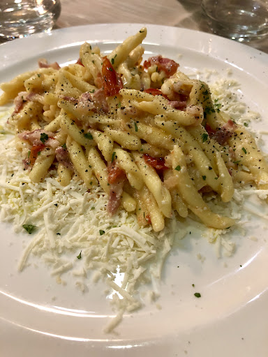 Read moreLa location è ricavata nella parte retrostante di un bar da cui si accede, non ha finestre ed i tavoli sono molto vicini tra di loro. Tant'e che per andare alla toilette devi quasi spostare le persone con le sedie rasenti muro. Il nostro pranzo veloce, per 4 persone (di cui una bambina di 3 anni) 2 cotolette con patate, una pasta, un tagliata e un antipasto per 2 persone, 2 acque, 110 euro...a mio avviso prezzo eccessivo per la tipologia di cucina e le porzioni. Nota positiva...