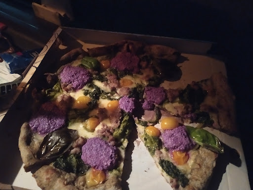 Read moreOttima pizza...... peculiarità del posto sono i 5 tipi di impasti diversi: 1 Impasto normale 2 Impasto di grano arso 3 Impasto di semola 4 Impasto ai cereali 5 Impasto di canapa Io ho preso la Sativa Rock con Impasto di canapa base bianca con marasciuoli selvatici salame di cavallo fettine di cacio ed altro veramente buona ..... poi abbiamo preso anche una margherita di bufala con l'impasto ai cereali ed è stata veramente ottima.... per carità per gli Impasti speciali i prezzi non sono bassi ma fidatevi ne vale la pena... 12 euro per una pizza speciale non sono tanti dato dal fatto che gli ingredienti sono ricercati e trattati con puro rispetto dal pizzaiolo Giovanni per farne risaltare al meglio i gusti e le combinazioni da lui inventate ..... bhe si ne vale la pena...