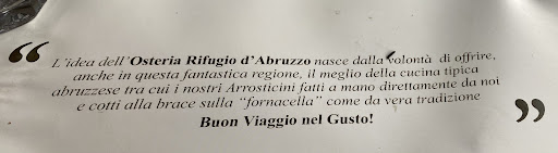 CONCLUSIONE Presi dalla foga di provare qualcosa di nuovo abbiamo un po esagerato, ma tutto e ripeto tutto era proprio buono! Ci torneremo sicuramente per degustare in modo più mirato altri piatti (e sicuramente mangeremo ancora gli arrosticini, sono uno tira l'altro!) fra cui il dolce fatto su base della pizza (fatta a focaccia) con sopra ricotta, scaglie di cioccolato bianco e nero con rum spruzzato su al momento usando un vaporizzatore....