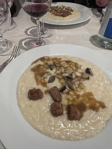 Bella serata in questo locale, non moderno, ma ben tenuto e accogliente, si percepisce subito una ottima attenzione al cliente dalle piccole cose fino al servizio vero e proprio, di ottimo livello. Oltre ai piatti nel menù, ci sono varie proposte che vengono illustrate a voce, in modo un po’ veloce a mio parere, ma se si chiede si hanno descrizioni dettagliate di ogni cosa. I piatti hanno prezzi medi alti, in linea con il livello del ristorante e c’è un ampia cantina da cui attingere. Consiglio il risotto, davvero un piacere mangiarlo. Per due antipasti, uno dei quali una tartare di filetto e un altro con tartufo ( un po’ insapore purtroppo), due risotti, un dolce, due calici e acqua abbiamo speso 110€. Ci tornerei volentieri a...