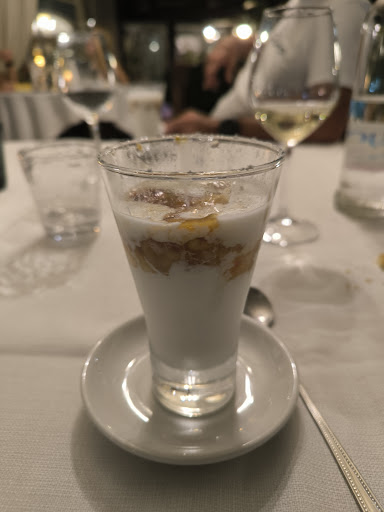 Hidden secret. Le Grotte D'Arno is a lovely place with a hotel and restaurant and not the completely usual Italian menu. Focus on fresh ingredients of the region and a delicious way of preparation. We had fried zucchini flowers filled with cheese and anchovis on a small salad, which was excellent, risotto of zucchini with small pieces of fried pancetta bacon and filled crepes with radicchio and a light cheese. Both dishes very tasty and the risotto very well done, not too creamy, not too solid. As second dish I ordered white fish milli foglie with thin slices of vegetables. This dish would not have been necessary but we wanted to try it because the other courses were also amazing. For desert we had mille foglie with chantilly cream and a warm chocolate cake. The chantilly was extremely dense, I imagine it was prepared with a special Italian whole fat cream. Irresistible! The waitress did not speak much English but we were able to communicate with hand and feet. An unforgettable dinner while outside it was...