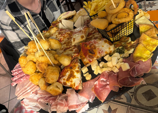 Read moreAbbiamo provato questo locale su consiglio di amici e spinti anche dalle belle recensioni abbiamo detto, perché no? Apericena a 15 euro con bevanda inclusa molto abbondante con fritti,gnocco fritto e salumi, tranci di pizza, tramezzini e assaggio di pasta. Tutto buono, primo e pizze un po' freddino ma comunque buono. Buono anche lo spritz. Oltre alle consumazioni incluse abbiamo preso anche 3 birre medie, 1 spritz e 5 caffè su 8 persone.. Abbiamo pagato 25 euro a persona, sul totale mi sembra un po' tantino ma senza scontrino non siamo riusciti a capire dove fosse la fregatura, nonostante i vari conti fatti in cassa con il cassiere qualcosa ancora non torna.. Voleamo pagare in modo singolo per non creare problemi con le seconde consumazioni ma per il cassiere era meglio dividere chissà perché... Per il resto locale semplice, meglio prenotare perché non è enorme. C è una sala interna e una riscaldata fuori. C è la tv ma non penso facciano vedere le partite. Fanno anche pizze d asporto. Tengo a rispondere al commento del proprietario senza cattiveria ma per 11 anche no visto che le bambine hanno 2 anni e mezzo e hanno si è no mangiato un pezzo di pizza e una fetta di salame. La ragazza quando ha preso l ordine ha contato gli adulti. Ecco spiegato il prezzo crescente. Non mi è mai capitato di includere in un tagliere aperitivo la quota di bambine piccole che non mangiano assolutamente come gli...