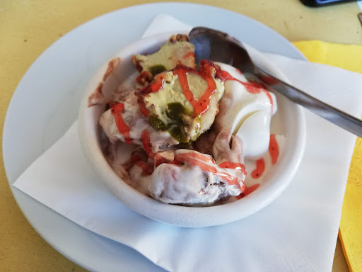 *In risposta al commento: la prima volta in cui siamo venuti, dopo aver visto più clienti andare via con il cibo avanzato, abbiamo richiesto gentilmente una piccola fetta del trancio di pizza restante relativo ad un ordine a parte e non all'apericena. Inoltre ho comunque specificato nella recensione che per una persona la porzione è stata abbondante con un buon rapporto quantità - prezzo. Richiedendo e pagando invece per un ordine doppio ci si aspettava una porzione doppia e non equivalente alla singola. È un discorso che comunque esula dal livello di sazietà dal momento che pagando si ha diritto a ricevere il cibo ordinato al tavolo (così come esposto da menù) indipendentemente...