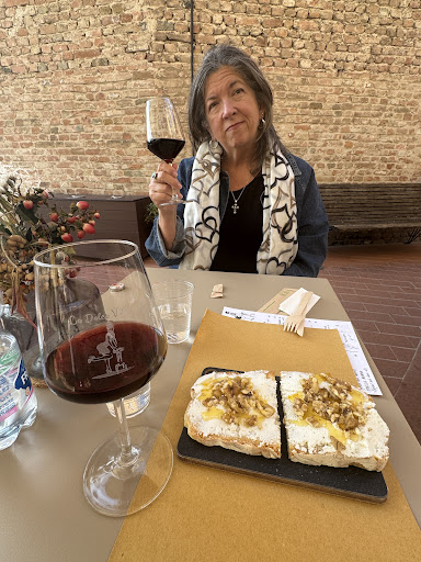 Read moreRelaxing place filled with locals sitting around talking and enjoying a drink. Owner Tony and a very friendly staff make sure that you are taken care of. We hung out while visiting Certaldo and had a couple of their speciality bruschetta offerings. They have their own red and white wines, in addition to local wines of the region. We ended up striking up some conversations with several locals and listened to the owner play guitar while a young woman sang. A very nice mix of locals and visitors, mixing...