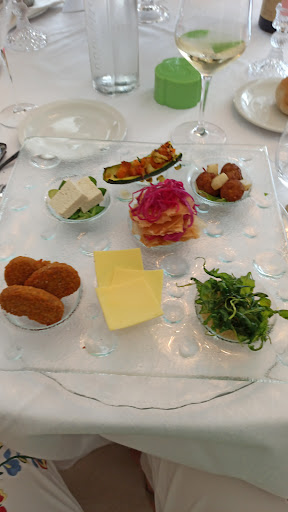 Vegetariana da 12 anni, vegana da quasi uno, ho partecipato a diversi ricevimenti in questi anni (matrimoni, comunioni ecc. quindi ristoranti avvisati in notevole anticipo) ieri ho partecipato al battesimo della piccola Maelle Vittoria. Confesso che sono partita molto scettica, mi aspettavo le solite verdure grigliate,😩 la solita insalata mista😔, il solito spaghetto, o altro formato di pasta al pomodoro fresco...e invece...sono rimasta stupita!!!positivamente stupita da quanto ho mangiato!!! Devo dire che mai nessuno, e dico nessuno, mi aveva soddisfatto come il fantastico chef di questo ristorante, noto per cucina a base di pesce!!! Location bella luminosa accogliente e fresca, personale qualificato che ti spiega la portata...ma soprattutto ho finalmente mangiato un vero menù vegano, (in un ristorante che vegano non è!) un menù solo per me (unica vegana nel contesto) addirittura stampato!! Che soddisfazione!! Non sto a postare tutte le foto, metto soltanto quelle dei due piatti più particolari del menù! La prima foto è l'antipasto... La seconda è una nuvola di riso, condita con diversi ingredienti e definita sul menù " Non è pizza "io l'ho trovata delicata e gustosa... Per me è super top!! Assolutamente...