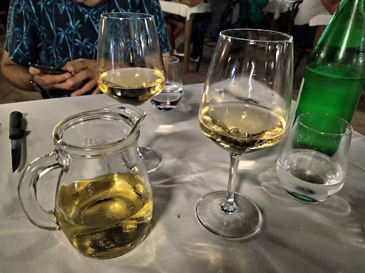 Read moreMetto 2 stelle perché alla fine il cibo era discreto.....Ma..... Non eravamo diretti li, ma l'entrata di questo posto abbarbicato su una collinetta ci ha affascinati. Arrivati davanti l'entrata, un cartello affisso al portone d'ingresso ci avvisava l'impossibilità di un pagamento che non fosse in contanti. Provo ad entrare comunque: mi dicono di accomodarmi, in qualche modo avremmo pagato, rimango perplessa. Età media della clientela 60 anni, non a caso di fianco alla sala ristorante un'altra sala adibita a "balera" in cui un centinaio di anziani si dimenavano come neanche dei 30enni. Ma il meglio è costituito dal carrello porta vivande...praticamente come quelli dell'ospedale...ci siamo trattenuti dallo scoppiare a ridere. I camerieri non ti portavano i piatti in mano ma con quello. Nulla da dire sul cameriere che ci ha servito, molto gentile e disponibile, ma vogliamo parlare dei proprietari? Non dico scortesi, ma un minimo cordiali? Già il fatto che metti un cartello in cui dici che non puoi pagare con le carte quando invece l'abbiamo potuto fare benissimo.... la dice lunga sul personaggi. Insomma, tutto un...