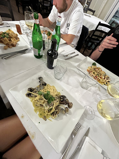 Il servizio ha lasciato molto a desiderare. La cordialità era quasi inesistente. L’antipasto e il piatto principale sono stati serviti contemporaneamente – nonostante fosse evidente che stessi ancora mangiando le cozze, la cameriera voleva già portarmi la pasta. Alla mia osservazione ha risposto solo con un freddo “Mi dispiace”. Eppure il ristorante era quasi vuoto – solo due tavoli occupati. Con così pochi clienti, errori del genere non dovrebbero accadere.