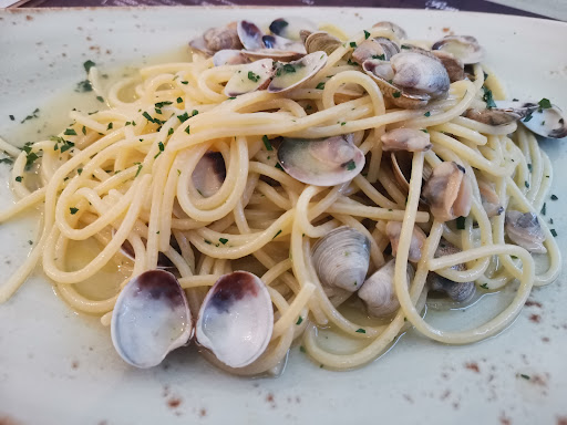 Read moreMi avevano colpito le recensioni e le foto: decido quindi di prenotare un tavolo x4 persone ore 20 di sabato sera. Salvatore ci ha subito fatti accomodare al tavolo con acqua e pane. Ho apprezzato moltissimo il distanziamento dei tavoli, si respirava tra commensali e non mangiavamo addosso ad altre persone: già qui voto 10. Premetto io al sesto mese di gravidanza con un caldo pazzesco. Poi arriva il piatto di crudite che ahimè non ho fatto in tempo a fotografare: bella "mise en place" e sapori freschi, il tonno era strepitoso! Io ho preso le cozze che erano davvero tante e saporite al punto giusto. Io ed il mio compagno abbiamo ordinato gli spaghetti con i lupini di mare e mio papà gli strozzapreti (fatti da loro, meravigliosi) con gamberi zucchine e lupini. Piatti cucinati divinamente, sapori esaltati semplicemente dalla freschezza della materia prima.A seguire fritto misto, che oserei chiamare il RE DEI FRITTI MISTI. porzione gigante, cottura perfetta, croccantezza e salatura perfette! Abbiamo evitato i dolci, non ci stavano ma sono sicura che anche lì ne saremmo rimasti incantati. Voto DIESCI per l'ottimo servizio: coinvolgente, non invadente, non ci hanno fatto fretta per sgomberare il tavolo, disponibili e nonostante il pienone del locale molto attenti alle tempistiche delle portate! Il conto assolutamente in linea, con bottiglia di vino abbiamo speso circa 40€/CAD. Onesto e meritatissimo. Cucina di pesce davvero ottima..se ci dovessimo ripassare sicuramente ci tornerei! Consigliatissimo e complimenti a tutto il...