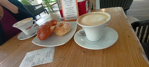 Questo posto ha una cameriera moralizzatrice che impartisce educazione ai bambini: al mio bimbo di 2 anni che giocava con lo zucchero gli è stato detto che non doveva sciuparlo. Ragazzina cara i bimbi di 2 anni non ascoltano i genitori e molto spesso sono soliti giocare con ogni cosa alla portata pertanto la prossima volta ti suggerisco di non prenderti tutta questa confidenza, perlomeno non con il mio bimbo. La ragazza bruna alla cassa a cui avevo chiesto se ci fosse il titolare, al quale avrei voluto raccontare il fare maleducato della sua dipendente perché venisse a conoscenza di cosa succede nel suo locale, mi ha detto che non ci sono titolari: ora se non c’è un titolare ci sarà una dirigenza a cui consiglio di considerare la ristorazione come una cosa seria e non improvvisata. Dimenticavo: bagno lercio da far venire i brividi, pavimento bianco lurido, puzza di chiuso all interno e nel gabiotto all esterno, poltrone verdi all esterno e tavolo sudici. Chissà come sarà pulita...