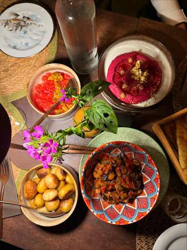 Questo ristorante marocchino è il mio posto del cuore, un angolo incantato dove torno praticamente ogni settimana con entusiasmo. Appena si varca la soglia, ci si immerge in un’atmosfera magica: un’oasi verde rigogliosa con tantissime piante curate con amore, tra cui splendide orchidee che donano eleganza e serenità all’ambiente. L’arredamento è raffinato, di grande classe, studiato nei minimi dettagli.