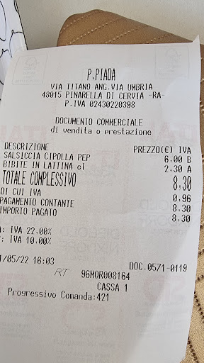 Read moreOvviamente il passaggio in Romagna non poteva non essere condito con una bella piadina Eravamo in due Simpaticissime le due ragazze. La mia piadina è stata sbagliata, nonostante ciò una delle due me l'ha rifatta al volo. Davvero brava Io ho preso un arrosto di tacchino con mozzarella. Un po secca. Mi aspettavo di più anche perché pensavo che la mozzarella venisse squagliata in padella e invece no Molto più buona la caprese della mia compagna Se torneremo sicuramente proveremo boscaiola e scquacquerone e rucola che in zona mi sembrano...