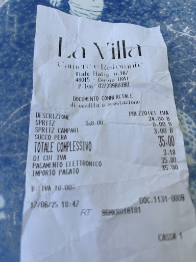 Read moreDire disonesti e terribili è poco. Siamo stati in famiglia per fare un aperitivo post spiaggia. Premetto che fuori hanno un cartello con scritto “ aperitivo dopo le 18”, e noi siamo andati proprio dopo per fare aperitivo. Abbiamo ordinato 4 spritz e un succo alla pera. Ci servono le bibite e dopo un piccolo cestino di patatine IMMANGIABILI. Secche, dure, stantie, vecchie come non so cose, aperte da non saprei veramente dire da quanto tempo. Non diciamo niente. Ci portano poi dopo un “tagliere”: 3 pezzetti di pane con dei pomodorini, due pezzetti di salame, e una fetta di crudo ( eravamo in 4 quindi neanche un pezzo di pane a testa). Vado a pagare : 35 €. 8 euro a spritz. Una cosa vergognosa. A quel prezzo mi aspetto un aperitivo con ALMENO delle patatine mangiabili, da un locale che poi pubblicizza l’aperitivo. Lo faccio presente e mi viene risposto che quello è un prezzo “NORMALE” e che il cameriere aveva capito che volevamo solo bere qualcosa. NESSUNO DI NOI AVEVA MAI SPECIFICATO. Io non scrivo mai recensioni negative, mi dispiace, ma così è una presa in giro per il cliente che paga e anche tanto. Perché uno spritz in pineta a pinerella di Cervia 8 € è indicibile. E quelle patatine le ha schifate...