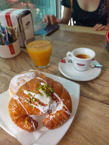Arrivati alle 16.45,chiediamo al bar di poter fare un aperitivo,la barista dice di chiedere all’addetta agli aperitivi che riserva i tavoli in base alle prenotazioni,troviamo un tavolo libero,e solo dopo mezz’ora arriva la responsabile degli aperitivi per darci i menu’,io visto l’attesa ho chiesto direttamente l’ordine ,alle 17.39non ci avevano ancora servito e allora abbiamo chiesto gli aperitivi al banco,hanno detto che si erano dimenticati..allora siccome eravamo in bici e si faceva buio,e loro non hanno detto,mi spiace,glieli facciamo subito,hanno semplicemente cancellato l’ordine..d’altronde il locale era pieno e a loro non gliene fregava nulla di un ordine in meno o più,e sicuramente la galanteria non è il loro forte..peccato..volevamo provare un posto nuovo ma sicuramente non ci andremo più se sono così lenti e si dimenticano le prenotazioni ,per fortuna che non hanno un ristorante che è più incasinato come...