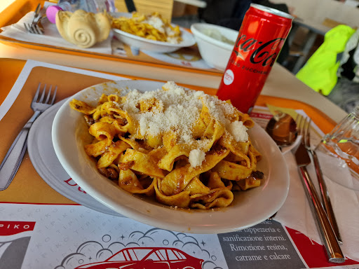 Locale eccellente sia per qualità del servizio, con Personale tutto cortese e qualificato, mediamente abbastanza giovane, sia al bar sia al ristorante self-service, con ampie sale interna ed esterna. Offre praticamente di tutto, dal caffè alla colazione, al pranzo e quant'altro, con possibilità di acquisto di regali o comunque di oggettistica varia, stile area dì servizio in autostrada, per intendersi, con, però e meglio, prezzi sicuramente più abbordabili e corretti, con prodotti freschi, genuini e di buona/ottima qualità. Particolarmente una nota di merito, oltre alla qualità del Personale sia al banco sia altrove, va al rapporto qualità-quantità dei piatti offerti dal self-service, in cui, in cucina in particolare, spiccano le signore cuoche, cortesi e simpatiche, facendosi notare per la qualità e la genuinità dei piatti ben preparati, dalle lasagne (squisite) alle verdure di vario tipo cotte e crude, ai piatti vegetariani o anche per onnivori, carnivori, ecc. . C'è anche ogni tanto del pesce, unica nota di miglioria sarebbe ampliare l'offerta del pesce e del pescato in generale, sia nei primi sia nei secondi. Tutto veramente ottimo, a partire da caffè e colazione, sarebbe poco oggettivo fare distinzioni tra un primo o un secondo di un tipo o di un altro, perché veramente è tutto di ottima qualità, con prezzi mediamente abbordabili, una media di 6 o 7 €. a piatto. Nulla da invidiare a ristoranti e trattorie di qualità. Si può anche usufruire di un menù ad €. 15,00, e pare accettino i buoni pasto, ad ogni modo, se non lo fanno, sarebbe opportuno lo facessero. In aggiunta, se ci si trova lì accanto, si può fare anche rifornimento di carburante, quindi veramente offre di tutto. Vi sono anche tavolini esterni, se non si vuole stare all'interno, veramente non manca nulla, e tutto, bagni compresi, è pulito e ben tenuto. Se poi uno potesse utilizzare anche una tessera fedeltà e magari usufruire di scontistica ulteriore (considerato che si tratta comunque di self-service senza, dunque, servizio al tavolo), per, come si dice, fidelizzare i clienti, potrebbe essere un'idea ulteriore, insieme a quella di ampliare l'offerta per vegetariani o vegani ed anche per il pescato, pensando anche ad una fascia di clientela un po' più salutista o a piccoli ed anziani....