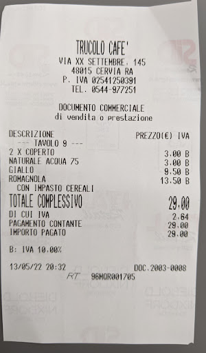 Read moreAperitivo sabato ore 12, con amici in visita a Cervia, opto per questo storico locale del centro che non frequentavo da un po'.... che figuraccia! La cameriera di turno, scocciata dalla richiesta di un Hugo ( che non conosce) ci dice che lei ha fatto solo Spritz per tutta l'estate, quindi, perplessi, le rispondiamo che ci vanno bene tre spritz e tre prosecco... Gli spritz erano ... acqua, ghiaccio e fettina di arancia. Le chiedo di aggiungere un po' di aperol, per migliorare la situazione (e per fortuna che ne aveva fatti tanti per tutta l'estate !! ) Dopo un po', le chiediamo altri tre prosecco. Che arrivano prontamente. Dopo due secondi, dal banco del bar, ci urla ... signori, sono in chiusura! e noi .. 'a che ora? ' risposta : alle 13 ! ... erano già le ore 13.... Un bar, in centro, che chiude alle ore 13 mandando via i clienti con il bicchiere pieno. Alla faccia della tanto decantata ospitalità romagnola.