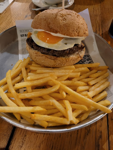 Caracatiță a fost bună și avea un plating frumos. Egg burgerul a fost din păcate doar carne, ceva bacon, ou ochi și putina maioneza ( asa era și în meniu ce-i drept, dar la cum era descrierea de pompoasă cu vita wagyu, chifla nu știu de care, ou sunny nu stiu ce, ma asteptam la mai mult). Burgerul nu a avut nici un gust iar chifla foarte sfărămicioasă. A avut cartofi pai incluși care au fost buni. Mi s-au oferit maioneza și ketchup care m-au salvat de la dezastru, mai puțin maioneza care era tubul gol. Trăiască Heinz ketchup!