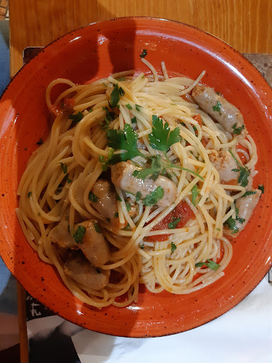La qualità del cibo, purtroppo, non ha saputo risollevare l’esperienza. La pasta, in diversi casi, è arrivata poco cotta e mal preparata, con pezzi incollati tra loro, indice di una scarsa cura in cucina. Il secondo di salsiccia che ho ordinato è stato ancora più deludente: mi è stato servito un piatto con piccoli pezzetti di circa 3-4 cm che sembravano più rimasugli che una portata vera e propria. Una presentazione simile non è accettabile.