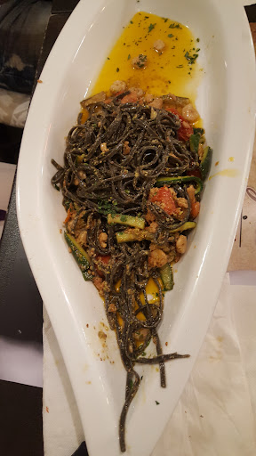 Il mangiare è stato diviso in 2 tronconi a mio modo di vedere: antipasti di ottima qualità (burrate favolose) ma primi indecenti a mio parere: ho preso le linguine con pomodorini schiacciati e astice, bene. Mica tanto: le linguine saran state si e no 50 grammi, i pomodorini 200 grammi e l'astice che aveva più polpa nella chela che nella coda (ah si,ovviamente metà astice, sia mai che si riesca a mangiare un'astice intero, o perlomeno la coda intera). Per non parlare dei tempi di attesa. Ci siam seduti al tavolo alle 21.30 e i primi li abbiam mangiati alle 23. Ok che c'erano gli antipasti in mezzo,ma un'ora e mezza tra antipasto e primo mi sembra comunque esagerato. Ah altra cosa, un mio amico ha ordinato gli spaghetti alle vongole con bottarga, peccato che anche lui 50g di pasta, vongole si abbondanti ma per la metà chiuse e quelle schiuse sapevano SOLO d'aglio e la bottarga neanche una briciola. Alla domanda "ma la bottarga?" la risposta è stata "eh,mi sa che è finita". E dirmelo prima?