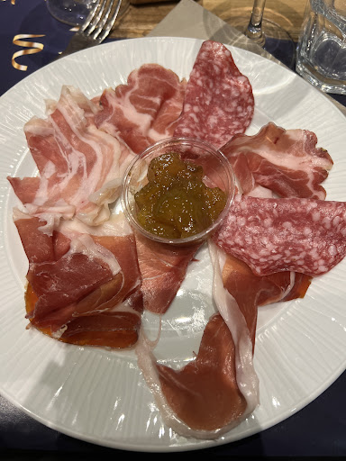 Pane non presente sul tavolo, richiesto più volte, portato alla fine quando ormai non serviva più, antipasto in grande ritardo tutto sommato a me è piaciuto, primo..risotto e lasagnetta davvero fredda e secca. Il risotto buono. Il secondo ad alcuni era ben cotto ad alcuni crudo, ho apprezzato un tipo di carne ma il resto lasciava molto desiderare.