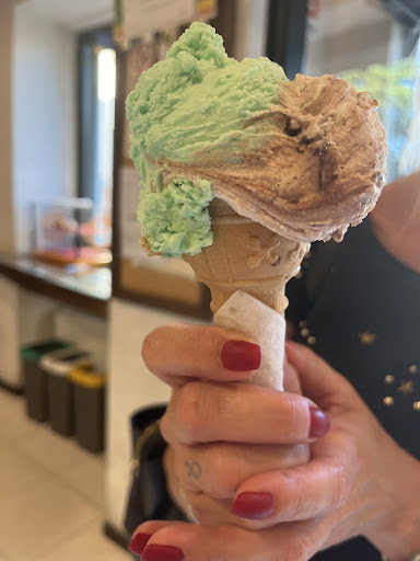 Posto piccolo e semplice,ha un facile accesso anche per le persone disabili grazie all'apposita pedana, subito all'entrata possiamo trovare una vetrata con moltissimo gusti, dal più comune cioccolato allo stravagante gusto puffo molti di questi sono davvero di ottima qualità e fattura, non solo possiamo anche trovare diversi gusti per le granite che per sfortuna sono solo 4, subito a destra é presente un piccolo bancone dove puoi godere di un ottimo caffé e comprare il tuo tipo di sigarette preferite oppure comprare una comunissima bottiglietta d'acqua, nel week end sono presenti dei tavoli all'esterno (non presenti in settimana) , per sfortuna le sedie sono pendolanti, per concludere all'esterno possiamo trovare una macchinetta dalla quale é possibile comprare sigarette, ricare il proprio cellulare e comprare delle ricariche amazon, in conclusione é un posto molto bello, semplice, completo ma...