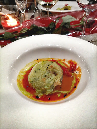 Luogo bellissimo ben tenuto e molto curato per l'evento di San Valentino. Menù buono e a buon prezzo l'antipasto meraviglioso, il secondo una bomba da far godere le papille gustative. Le trofie spaziali! Le uniche pecche non fanno l'assaggio del vino e non lo versano nel bicchiere (meno male che fuori il cartello dice che qui c'è il sommelier). Il sugo dei ravioli era fatto con i gamberetti da cocktail (almeno le mazzancolle se i gamberi argenitini costano troppo) e il dessert, un cestino di pasta sfoglia con panna e fragole, era raffermo, consiglio di usare la frolla la volta prossima che resiste di più. Per il resto tutto buono. Consiglio qualche piccola accortezza perché il posto merita e il personale è gentile e può dare...