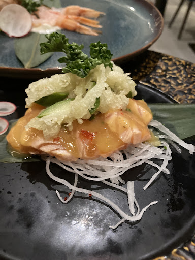 Read more4 stelle, di piu non mi sento di dare. Locale appariscente dall'esterno, dentro particolare ma troppo caotico. Le aspettative erano alte visto le recensioni e soprattutto perchè mi era stato consigliato. Eravamo in 10 in un tavolo da 8, avrei gradito che al momento della prenotazione qualcuno mi avesse avvisato dicendomi "guardi che il tavolo è piccolo" o "mi spiace ma non abbiamo una soluzione comoda per 10, possiamo suddividervi su due tavoli?". Insomma eravamo molto stretti, veramente troppo e per di piu dopo aver ordinato un cameriere si è anche lamentato perchè secondo lui abbiamo ordinato troppo e non c'era spazio per poggiare i piatti… ma scherziamo? Ma non vedete che siamo già stretti senza nemmeno aver ordinato? Abbiamo fatto anche portare via i bicchieri non utilizzati per recuperare spazio… Qualità del cibo buona, ma solo per alcuni piatti, altri invece non erano all'altezza e questo è stato il giudizio condiviso fra tutti noi. Fra le cose piu buone sicuramente le varie tempure. Probabilmente bisogna dargli una seconda possibilità quando saremo in pochi, anche se a pensarci bene ho mangiato meglio in altri ristoranti. Sicuramente lo sconsiglio se siete una...