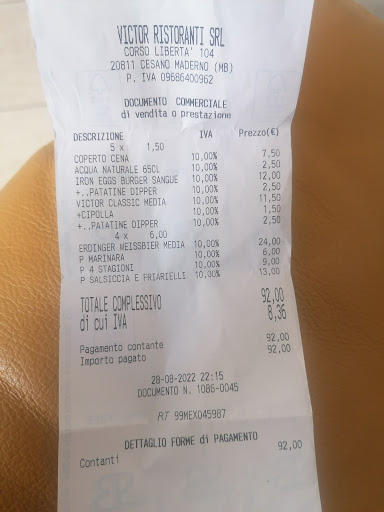 Read moreSono stato ieri sera, 19 ottobre 2022, per la prima volta in questo locale nella sede di Cesano Maderno, ce n’è una anche a Gallarate, e devo dire che la curiosità è stata ASSOLUTAMENTE SODDISFATTA e adesso spiegherò il perché.. Innanzitutto per fortuna che avevo prenotato, cosa che comunque faccio sempre quando esco a mangiare anche se sono da solo, il locale era pienissimo data anche la contemporanea presenza di una cena dei Lions. Come antipasto abbiamo ordinato un tagliere di salumi e formaggi con gnocco fritto, c’erano anche della marmellata e del miele..MAMMA MIA CHEBBBBBUONOOO!!!..unica pecca, avrei messo qualche fetta di salame e di prosciutto crudo in più ma solo perché io ne vado matto, la quantità comunque era soddisfacente. A seguire sia io che mi fratello abbiamo preso il tris di carni affumicate con insalata di cavolo viola in salsa coleslaw ed una porzione in due di fagioli alla Bud Spencer, con sugo e salsiccia ed anche in questo caso..MAMMA MIA CHEBBBBBUONOOO!!! Che fai il dolce non lo prendi?!?..io ho optato per il tiramisù, servito in una caffettiera dove nella parte inferiore, dove si mette l’acqua, il tiramisù vero e proprio e nella parte superiore dei bottoncini colorati di cioccolato, mio fratello invece ha preso il tortino al cioccolato con cuore caldo..SENZA PAROLE..😋🤤😋 Da bere 2 bottiglie d’acqua ed una birra media. Per finire 2 caffè e da buon sardo un mirto..consiglio personale, servitelo ghiacciato non da frigor, è più buono.. Il conto 108,50€ a mio parere è giustissimo per qualità/quantità Servizio velocissimo, personale gentilissimo e tutto di ragazzi giovani. Una cosa mi ha colpito molto positivamente, mi è caduta la forchetta e quello che credo fosse il responsabile di sala, impegnato ad un altro tavolo, ha subito detto ad uno dei ragazzi di venire al mio tavolo e sostituirla.. Che dire..VICTOR PROMOSSO A PIENI VOTI, CONTINUATE...