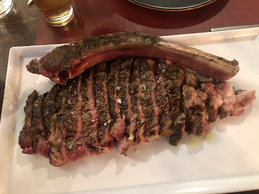 Una carne così non si scorda facilmente. Non siamo grandi intenditori, siamo due ragazzi giovani che hanno avuto il piacere di passare una domenica sera in questa bisteccheria per festeggiare un lavoro nuovo e un premio tecnico. Ci viene consegnato, oltre al menù, un foglio con i vari prezzi e pesi minimi della carne: prezzi per noi proibitivi, anche se sicuramente giustificati nella qualità scelta. Ed è un peccato perchè sono sempre dell’idea che spendere un prezzo premium alle volte è necessario. Una bistecca però mi sarebbe costata quasi un mio stipendio. Da qui un dubbio: tagli così “pesanti” si possono condividere anche tra più di 2 persone? Mi auguro di sì. Abbiamo perciò iniziato con due antipasti dalla carta: spiedini di cervo su aghi di abete rosso, profumato alla brace di faggio. Un abbinamento che ha fatto sognare il mio compagno e gli ha dato un’idea di come poterlo cucinare a casa. Io invece, avendo visto diverse foto del loro “transatlantico”, ho optato per la versione mini: midollo caldo tagliato a barchetta con una tartare e un coulis di pere William. Poche volte in vita mia ho assaggiato una tartare così buona. Poi, abbiamo proseguito con una vacca galiziana ricavata dal posteriore (lui) e un asado di buey black Angus (io). La qualità si è sentita, entrambe le carni erano squisite. Tuttavia la mia porzione era un po’ ridotta e - nonostante la cameriera probabilmente mi ha avvisato preventivamente - me la sarei aspettata meno grassa. Le patate al forno niente da dire, un contorno spettacolare. Molto apprezzati i due amari offerti alle erbe, ci hanno fatto sentire come se non ci fosse differenza tra noi persone umili da menù alla carta e chi invece, entra e spende senza remore. Tornare ci torneremo sicuramente con qualche amico per fare un figurone, anche perchè prima o poi già mi immagino ad ordinare il transatlantico da 38 euro da sola e finirlo come unica portata. A detta del mio compagno sul caffè si poteva fare di meglio, ma vi perdoniamo.