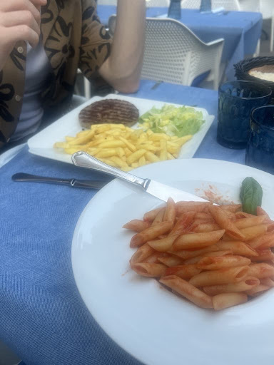 My wife was hoping to try local anchovy-based dishes, but they were all “unavailable” that night, which is odd in a fishing village known for anchovies. She ended up settling for one of their “land specialities”: penne with tomato sauce for €10. She got overcooked pasta, supermarket quality at best, and a bland canned tomato sauce. No salt, no olive oil, just a limp basil leaf.