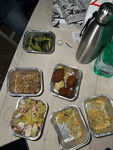 Read moreSenza dubbio il pesce servito è fresco di giornata e di ottima qualità . Infatti, non ci hanno potuto servire ciò che volevamo ordinare in quanto non avevano il pesce necessario alla preparazione. Il servizio veloce. Personale molto cortese. Abbiamo consumato il pasto all'esterno in mezzo a degli ulivi secolari. Molto suggestivo ma da valorizzare di più. Infatti, molto improvvisato. Servono anche la pizza e l'impasto è molto buono. La consiglio. Senza nulla a pretendere si va lì soltanto per mangiare pesce fresco ed un ottima pizza. Questo era un anno fa circa. Oggi invece sono passato per mangiare una pizza ma purtroppo alla domanda di quando aprivano per la sera (domanda fatta alle ore 19.45) erano con la testa fra le nuvole! Non mi è piaciuto la...