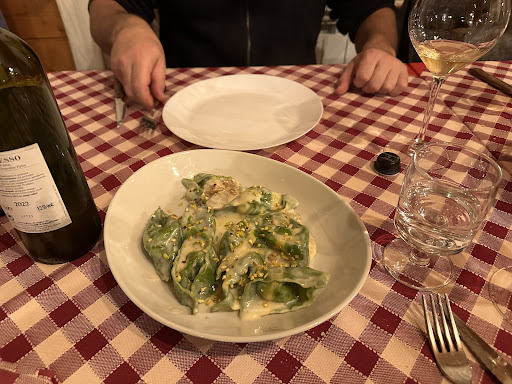 Me and my family went there to eat dinner, and we were very very impressed with the food and the atmosphere! Our antipasti was well balanced with a variation of different kind of cheese, prosciutto, pane and other different flavors! My primi was a homemade ravioli with Gorgonzola, figs and Zucca! And it was extremely tasteful and out of the ordinary! With our primi and secondi we had local vino rosso e vino bianco from Chianni, which I really liked the concept of!😊