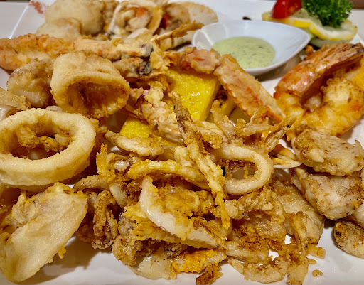 Read moreTutto molto buono e presentato bene, abbiamo cenato in famiglia per una ricorrenza e ho avuto modo di vedere e assaggiare molti tra i piatti del menù per potermi fare un’idea generale del ristorante. I dolci sono deliziosi e impiattati veramente bene, i primi e gli antipasti sono anch’essi molto buoni ma mi permetto di fare due critiche: ogni piatto viene servito con una decorazione fatta con una fetta di limone, una foglia di prezzemolo, un pezzetto di cetriolo e due spaghetti neri (presumo al nero di seppia), cosa che trovo totalmente inutile ma perfetta se vogliamo sprecare cibo. I piatti sono già belli di loro, non c’è bisogno di aggiungere queste cose per migliorarne l’aspetto. Un’altra cosa che mi permetto di criticare sono le carote a fette negli gnocchi al granciporro, completamente senza senso. Gli ombrelloni esterni sono decorati con delle luci perimetrali appese, su cui due lampadine erano bruciate. Prezzi giusti ma le porzioni sono un po’ scarse... il servizio è un po’ disorganizzato vista l’uscita dei piatti non sincronizzata. 4 stelle per questo... ma alle...