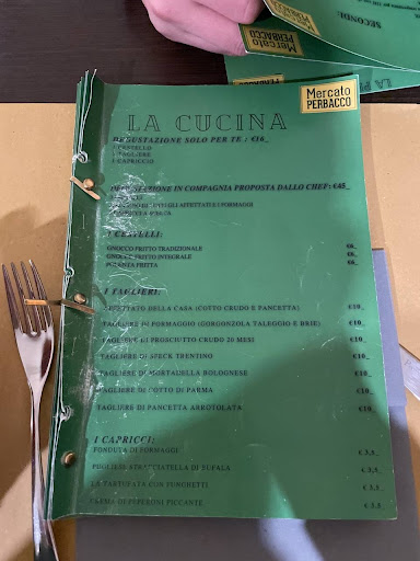 Dare brutte recensioni e' una cosa che non mi e' mai piaciuta, ma dopo quello che e' successo ieri sera, mi sento obbligata a scriverne una. Premetto che siamo clientit assidui del Mercato Perbacco e ci siamo sempre trovati bene, tanto da venire in compagnia un paio di volte al mese. Ieri sera ho deciso di ordinare lo gnocco fritto insieme ad un tagliere di prosciutto crudo e stracciatella. Il piatto si presentava molto bene ed e' certamente condivisibile, io non sarei riuscita a finirlo da sola. Lo gnocco e il prosciutto erano buoni , purtroppo mi hanno servito della Stracciatella andata a male. Prima di farlo presente, ho chiesto ai miei commensali un parere e mi hanno confermato che la stracciatella fosse immangiabile. Ho quindi comunicato in maniera gentile alla titolare il mio problema, la quale, dopo essere andata in cucina, e' venuta a scusarsi dicendo che avevo ragione. Non mi ha portato altra stracciatella, il che mi ha fatto pensare che avessero solo quella e che abbiano servito stracciatella avariata a tutti quella sera. Mi e' poi stato chiesto se desiderassi cambiare la stracciatella con la fonduta di formaggi, a quel punto io ero un po' stomacata e ho detto che preferivo continuare senza formaggi. Dopo questa interazione, la titolare non e' piu venuta a chiederci nulla o a cercare di rimediare offrendoci qualcosa (caffe, dolce, amaro), quindi ho immaginato volesse solo farci uno sconto. Al momento di pagare, ho scoperto che non ci era stato fatto nessuno sconto perche', a loro dire, la stracciatella e' gia in omaggio.. Ci siamo tutti rimasti di sasso: ci hanno dato da mangiare un latticino avariato che poteva ritorcersi in un problema medico, e per loro va bene cosi perche' tanto la stracciatella e' gratis nel pacchetto. Lavoro nel settore Hospitality da 9 anni, quindi sono un po' familiare con queste situazioni, ecco come avrebbero dovuto gestire la stiuazione: Prima di tutto, si controlla prima del servizio che tutti i cibi da servire siano commestibili. Se uno vi scappa e viene servito al tavolo, ci sono un paio di cose che potete fare: a) chiedete scusa e offrite dolce, caffe o amaro b) togli lo gnocco fritto dal conto c) entrambe le opzioni qui sopra citate.