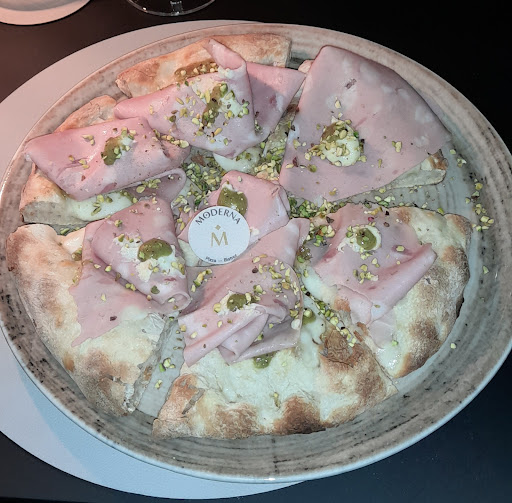 Location con uno stile moderno,gradevole e ben bilanciato che lo rendono perfetto sia in coppia che con amici/compagnia. Il menù su Qr code rende la visione e la scelta delle proposte poco comoda e si rischia di perdersi tra le varie proposte che risultano nel complesso (tra pizze e altri piatti) completa e varia.Ordinato n°1 antipasto (diviso in due) e n° 2 pizze (+ acqua 1lt e n°2 calici vino).Le pizze all'arrivo si presentavano molto belle (tra farcitura e cottura) ma entrambe erano tiepide e seppur al gusto erano molto buone poco dopo essere arrivati a metà erano fredde rendendole poco appetibili.Buono il servizio, veloce , presente ma non invasivo. Prezzi superiori alla media (spesa totale:64€) che dovrebbero garantire una qualità superiore alla media ma che personalmente non ho riscontrato, (altre pizzerie gourmet hanno la stessa qualità con costi minori). Consigliato ma solo se le vostre 1 e 2 opzione per passare la serata non siano...