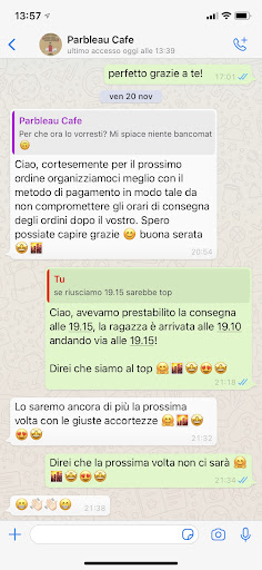 Il giorno seguente siamo tornati per un aperitivo. Abbiamo ordinato due spritz a 7 € ciascuno – un prezzo piuttosto alto considerando che siamo a Chiari e non in una località turistica – e di nuovo due succhi per i bambini. La sorpresa è arrivata al momento del conto: gli stessi identici succhi del giorno prima ci sono stati fatti pagare ben 5 € l’uno. Alla nostra richiesta di spiegazioni, la barista ha giustificato la differenza parlando di una maggiorazione per l’orario aperitivo.