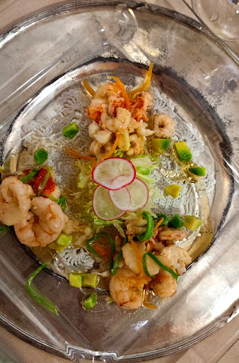 Locale di livello medio/alto,in stile nautico,cosi'tanto legno,sembra di entrare in una barca di un tempo.Parimenti si respira rigore,i camerieri sono fin troppo gentili,ma di una gentilezza affettata,di maniera,qualcosa non mi convince. La veranda da'sul lungomare,sulla -passeggiata- e sulla spiaggia. Il menu'non e'molto ampio,con piatti essenziali ma di qualita'.Riconosco il gusto ottimo del risotto e dei ravioli a base di pesce,cosi'gustosi anche i crostacei. Ho apprezato il vino Haderburg Gewurztraminer 2015 e trovato ottimo il vermentino passito Sarvaego 2017,scelto per accompagnare la deliziosa cheesecake. Il menu'non riporta i prezzi delle portate,almeno quello dato alle signore;comunque sono...