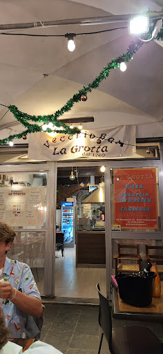 Siamo stati alla Grotta di Chiavari e, fortunatamente, ci siamo seduti all’esterno. Non abbiamo mangiato nulla Carne fetida, calamarata di pesce a dir poco disgustosa, condita con olio strausato e nauseabondo. Mai vista una situazione simile: da star male solo all’odore. Un pericolo per la salute!!! Entrando per pagare, ci siamo trovati davanti a uno spettacolo a dir poco raccapricciante. Non fatevi illudere dalle foto ! L’interno del locale è impregnato da una puzza nauseabonda, segno evidente di scarse condizioni igieniche. La cucina, visibile in parte, mostrava una friggitrice incrostata di nero, probabilmente mai pulita negli ultimi 20 anni. L’odore dell’olio bruciato e la carne lasciata all’aria con un fetore tremendo parlavano da soli: cibo a rischio sanitario. A quel punto era chiaro che non avremmo toccato nulla, ma ormai avevamo ordinato. Col senno di poi, non avremmo dovuto nemmeno sederci. Se avessi visto prima l’interno, sarei fuggito a gambe levate. Un posto così andrebbe chiuso immediatamente, altamente pericoloso per la salute pubblica. Mi auguro un tempestivo intervento dei NAS, perché quello non è un ristorante: è una trappola igienico-sanitaria.