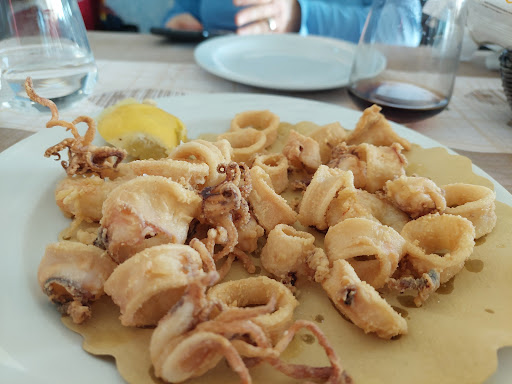 Abbiamo cenato in questa trattoria con vista mare! Io sono celiaca e ho trovato il personale pronto e informato sull'argomento molto attento nei miei confronti! Abbiamo preso piatti tipici della tradizione e piatti di pesce, una bottiglia di vino eccezionale! La frittura di pesce era deliziosa a e croccante al punto giusto, in generale porzioni davvero importanti e sfiziose! Il pesce cotto in maniera impeccabile e quando necessario estremamente morbido. Unica pecca mancava il dolce senza glutine. Io ho mangiato un ottimo antipasto di mare dove mi sono stati forniti ben due pacchetti di creaker senza glutine e di secondo il pesce al forno con patate olive (col nocciolo)e pomodorini, ovviamente sono stata benissimo, nessun problema. Gli altri sono rimasti soddisfatti dalla quantità, e dalla qualità del pesce. Il dolce molto apprezzato. Personale molto gentile e simpatico. Il locale in generale migliorabile in quanto la posizione è strategica e con vista mare. Ritorneremo Rapporto qualità /quantità/ prezzo assolutamente corretto per una cena completa di 5...