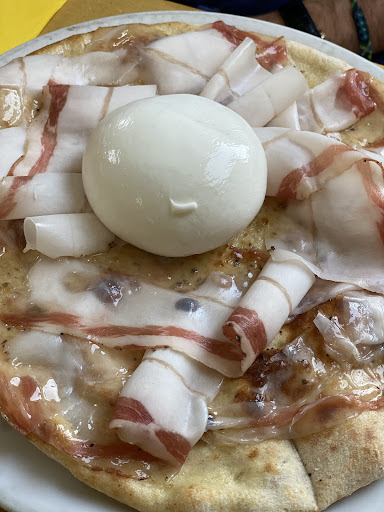 Alla Pizzeria Locanda del Muré sono finalmente riuscito ad assaggiare la Pizza 🍕 dopo vari tentativi perché trovato sempre il locale completamente pieno senza posti a disposizione senza attesa. Peccato per il parcheggio perché si trova in una zona molto trafficata a ridosso di una strada per trovare un parcheggio bisogna fare una cinquantina di metri e andare in una piazzetta lì allora riuscire a trovare un posto per l'auto. Il locale si presenta abbastanza grande e unico non suddiviso su altre stanze c'è una ottima stufa che scalda tutto l'ambiente e lo rende ancora più caldo e accogliente. Passiamo ai piatti: mi sono incuriosito nel voler assaggiare la farinata con il lardo che è stata davvero spettacolare : quantità giusta : un quarto della dimensione e con leggerissime fette di lardo tagliate molto fini è stata forse la farinata con Lardo più buona e leggera che ho assaggiato. Ho scelto poi una pizza 🍕 al Mattone (non al tegamino perché c'è anche la possibilità di fare questa scelta) : Preferisco il forno a legna ma devo dire che anche se non c'era i piatti arrivati sul mio tavolo erano ok. La pizza non era affatto male, anzi, materia prima fresca un bell'impasto leggero cotta bene. Voto 7. Anche il servizio devo dire veloce e preciso puntuale poca attesa. Dolce: ho scelto il Bunet: leggero delicato, piacevole.